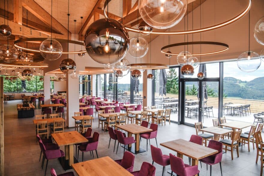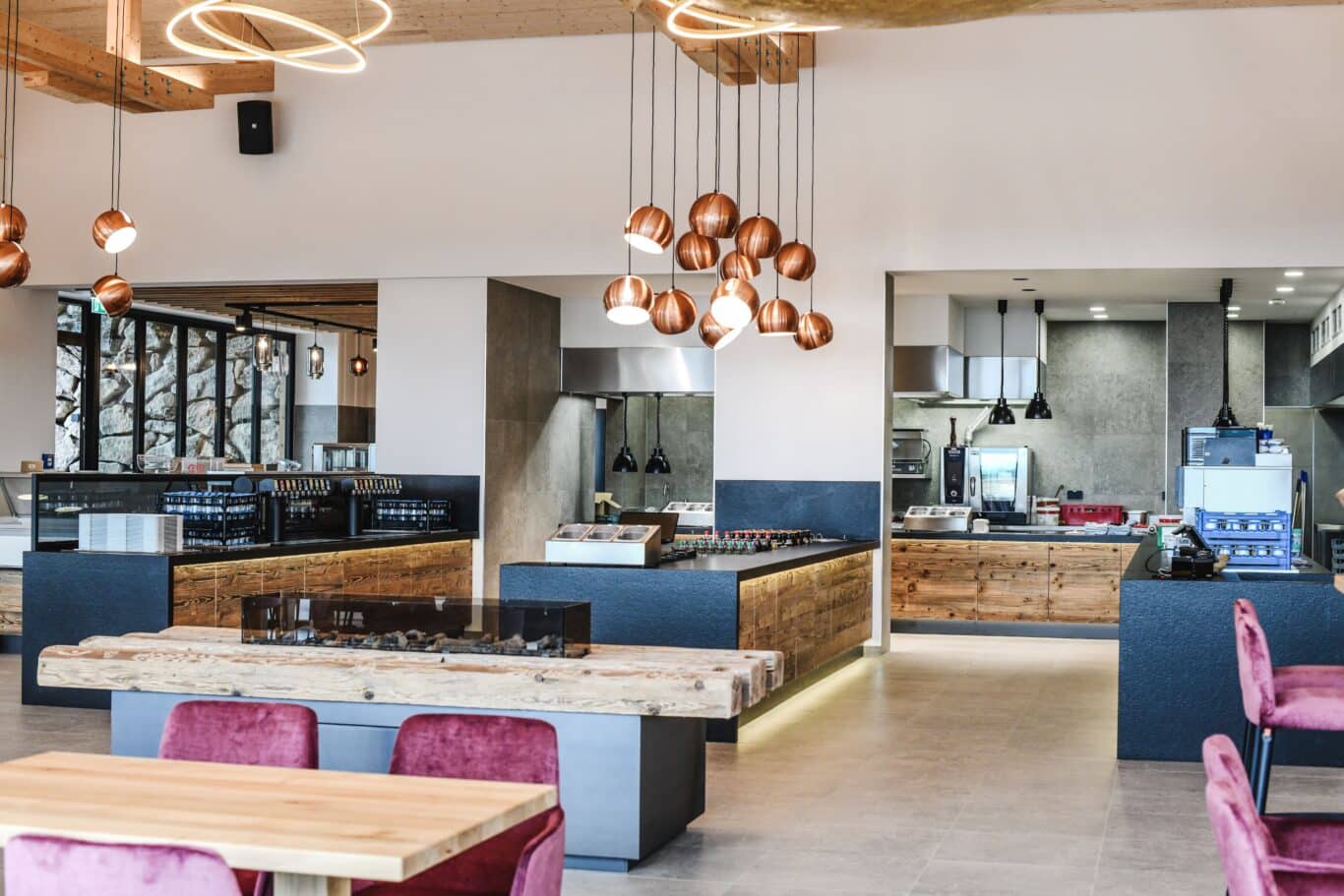 Besuchen Sie unsere neue „Edelwies-Alm“ und genießen Sie in unserem spektakulären Restaurant leckere Speisen und Getränke.