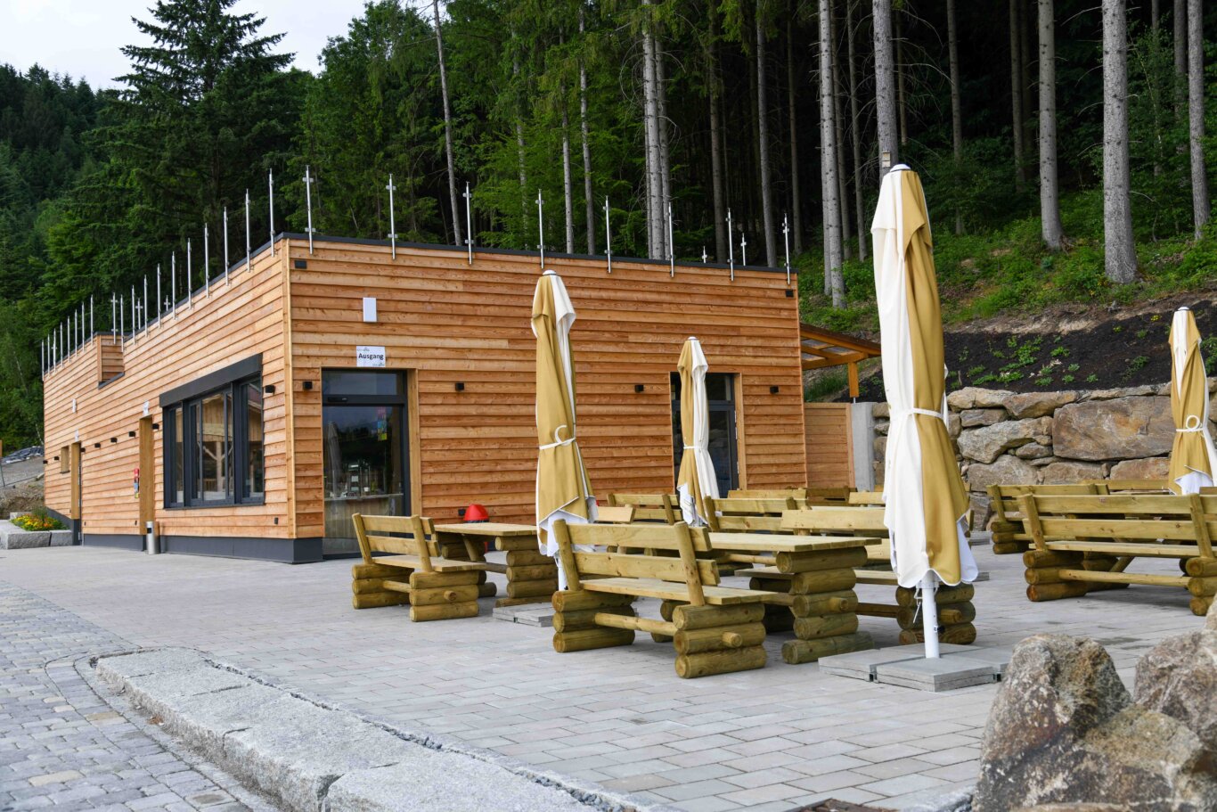 Das Restaurant am See liegt direkt neben dem Stauweiher und der interaktiven Bootsfahrt.